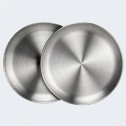 Assiette Plate De Camping | Diamètre Env. 23 Cm | Acier Inox | 2 Assiettes