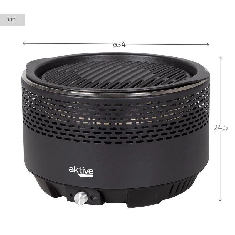 Barbecue Rond Noir Sans Fumée 2 En 1 Ø34 Cm Aktive