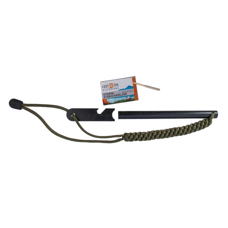 Ce feu de silex de 15 cm de long produit beaucoup d’Ă©tincelles grâce Ă sa tresse de paracorde et Ă son pratique allume-feu, enflammant facilement votre amadou.