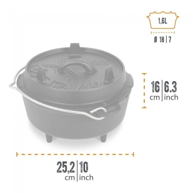 Robuste et finement fini, le Dutch Oven Petromax 3QT est parfait pour 1 Ă 3 personnes. CapacitĂ© de 2,3L et poids de 3,8kg. PrĂŞt Ă l’utilisation (prĂ©-assaisonnĂ©) avec ou sans pieds.