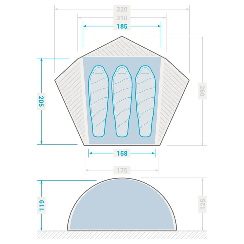 Tente 3 saisons : votre tente vous protégera des conditions météorologiques difficiles que vous rencontreriez au printemps, durant l’été ou en automne. Elle supportera de petites chutes de neige mais n’est pas conçue pour résister à de grosses charges qui pèseraient sur la structure.