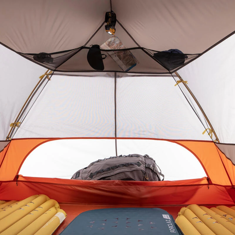 Les 3 absides (latérales et frontale) de 70 cm de large environ sont protégées par un tapis intégré, qui met votre équipement à l’abri du sol et des intempéries. Elles permettent un espace de rangement, qui peut accueillir 3 sacs à dos jusqu’à 70 litres environ.