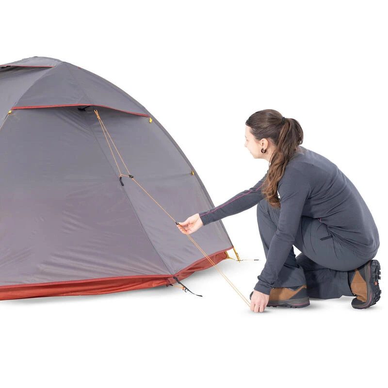 Le double-toit et la chambre sont séparés. Le montage se fait donc de manière traditionnelle : la chambre, posée au sol, est clipsée sur les arceaux. On vient alors couvrir l’ensemble par le double toit. Ajuster les tensions.